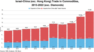 本文调查了过去十年(2013-2022年)以色列和中国之间的商品和服务贸易趋势,还分析了与美国和欧盟相比,以色列与中国之间的贸易平衡情况。