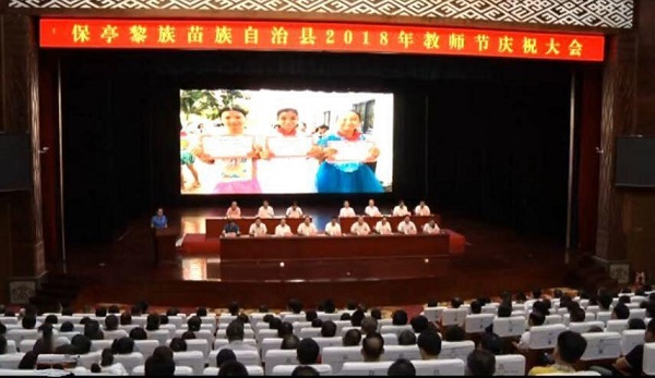 今年9月10日是我国第34个教师节。9月7日上午,海南省保亭黎族苗族自治县召开2018年教师节庆祝大会,通报表扬一批优秀教育工作者,激励广大教育工作者,发扬优良传统,开拓创新,扎实工作,为建设教育强县,办人民满意的教育做出新的更大贡献。