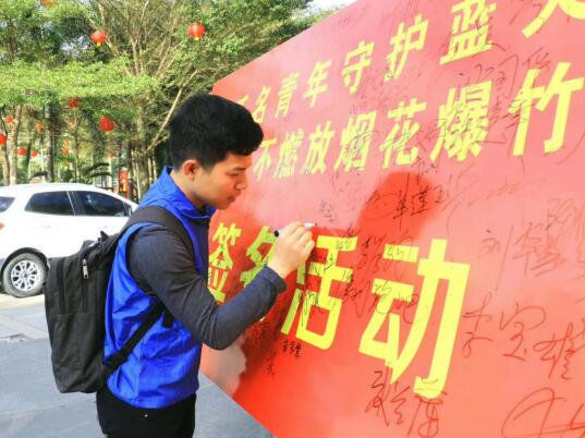 当天的启动仪式现场,还举行千名青年守护蓝天、宣誓不然放烟花爆竹签名活动。