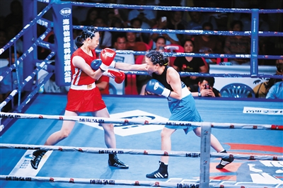 2017“博海争霸”拳王对抗赛上,拳手激烈交锋。 黄祥 摄