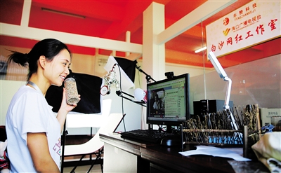 一名女孩在白沙电子商务产业园网红工作室通过网络推销胡椒。 苏晓杰 符福辉 摄