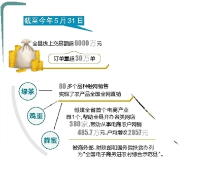 其实远不止福才村,在过去的一年多时间里,被认为是产业基础弱、交通物流差的白沙发展起了电商。一年多来,全县线上交易额超6000万元,订单量超30万单,有22个贫困村实现了“触网”增收——白沙借助电商敲开了经济发展的又一扇门。