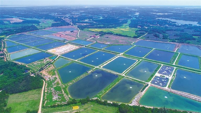 5月20日,航拍文昌市锦山镇湖山溪尾罗非鱼养殖场。 记者 张茂 摄