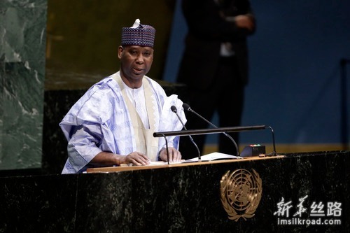 6月4日,在位于纽约的联合国总部,尼日利亚常驻联合国代表提贾尼·穆罕默德-班德在当选第74届联合国大会主席后发言。新华社记者 李木子 摄