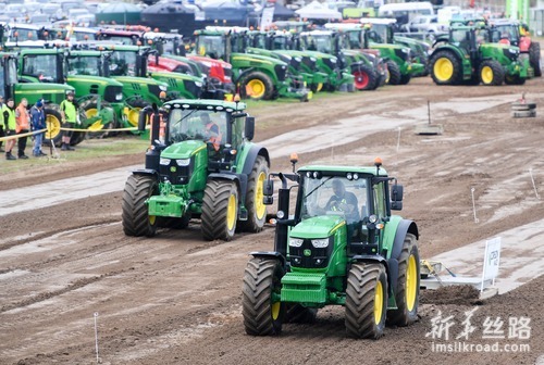 6月12日,在新西兰汉密尔顿举行的第51届国际农业博览会上,选手参加拖拉机牵引大赛。新华社记者 郭磊 摄