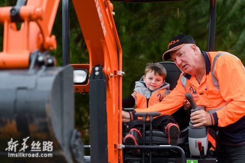 6月12日,在新西兰汉密尔顿举行的第51届国际农业博览会上,一名男孩参观挖掘机。新华社记者 郭磊 摄