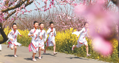 衲田村内,一架小型无人机在空中盘旋,吸引着孩子们欢叫追赶,一打听,才知是几个年轻人正在忙着拍摄视频,孩子们在这片美妙的世界里蹦着、笑着,播洒希望活力。不禁让人感慨,此时人与自然,天人合一,除了欢乐和谐,还有一种诗与远方的美丽!