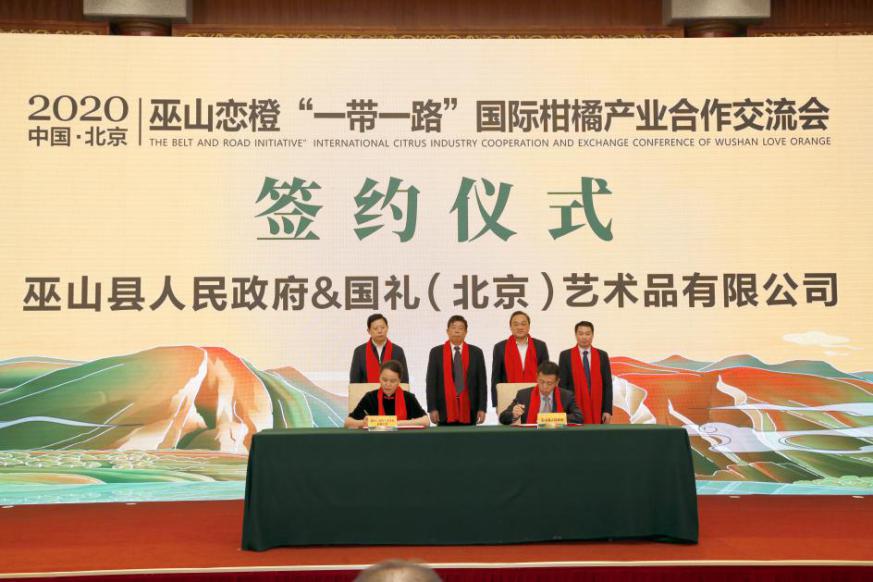 此外,会议期间,国务院参事、中国农业经济专家何秀荣,国务院国资委监事会原主席刘顺达,中国合作经济学会会长、原农业部总农艺师孙中华,中国农业出版社总编辑胡乐鸣,中国果品流通协会会长鲁芳校,中共巫山县委副书记、县长曹邦兴等领导嘉宾共同上台开启巫山恋橙“一带一路”全球战略合作;巫山县委常委、副县长侯建盛与国礼(北京)艺术品有限公司总经理袁玉珍作为双方代表签订战略合作框架协议;重庆上尚橙企业管理咨询有限公司董事长王红胜对巫山恋橙全新包装进行了解读。
