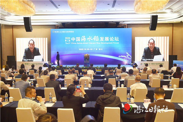 10月29日,2020第二届中国海水稻发展论坛举行,现场观看大会主席袁隆平院士致辞视频。 记者 刘冀城 摄