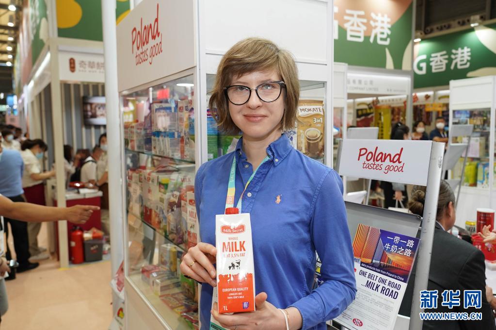 5月18日,波兰参展商在展位上推介波兰牛奶。 新华社记者 任珑 摄