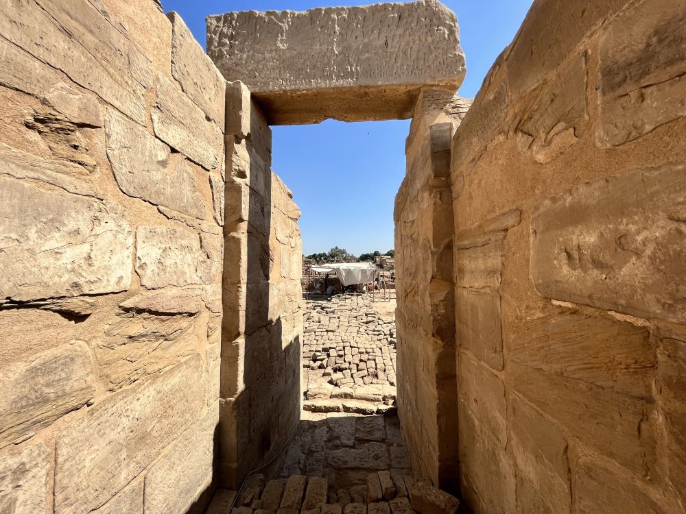 这是4月8日在埃及卢克索拍摄的中埃卢克索孟图神庙联合考古项目所在地的一座小神殿的大门。