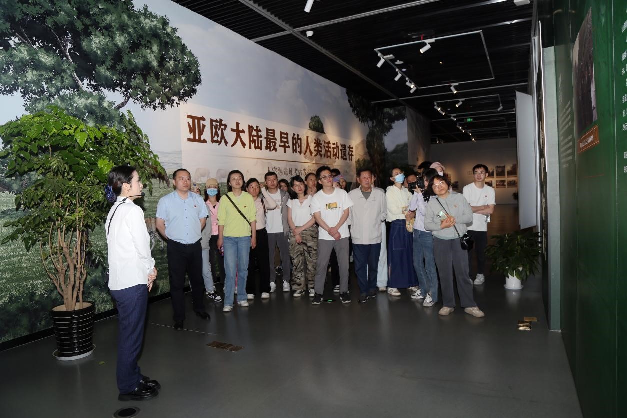 在孙村镇人字洞遗址陈列馆和发掘现场,文物管理员、芜湖好人盛昌林老人陪同参观,全程热情讲解。驻足250多万年前欧亚大陆最早的人类活动遗址,他们难掩激动心情,并仔细观察着一件件化石实物或标本模型,纷纷为古人类的文明智慧所震撼,油然而生强烈的民族自豪感和历史使命感。