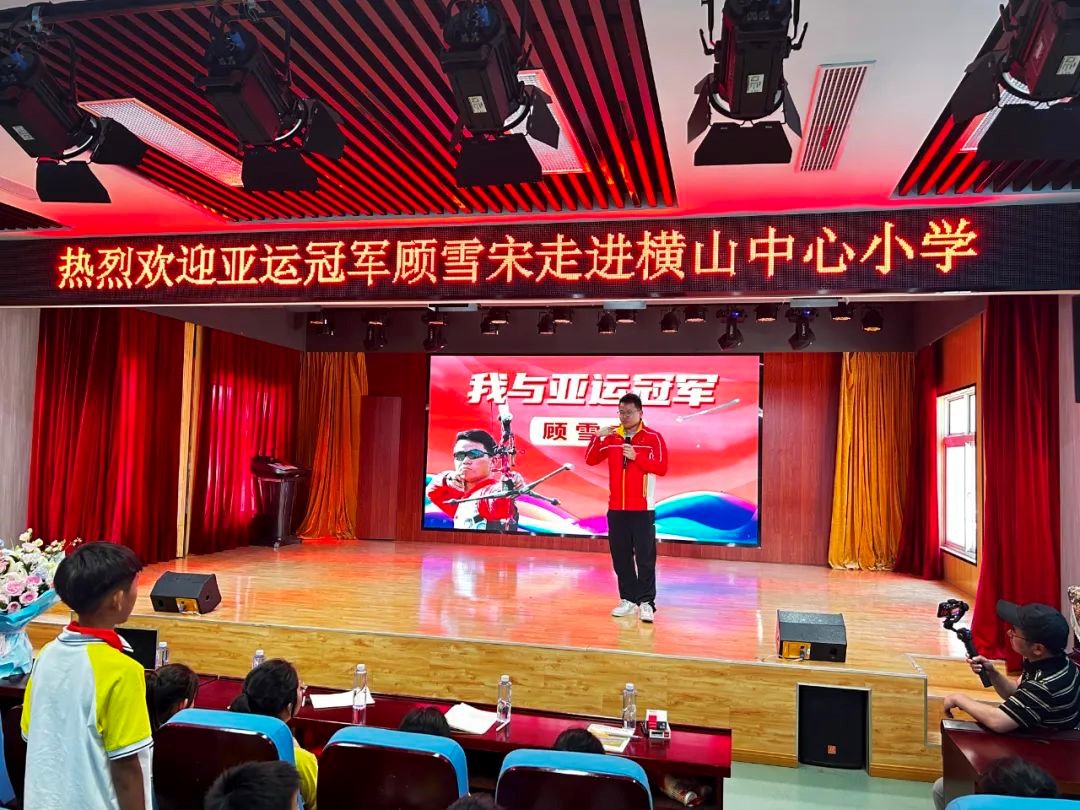激情燃烧的六月,安徽省芜湖市繁昌区繁阳镇横山中心小学迎来了亚运会团体冠军、射箭国际健将顾雪宋。阳光明媚的下午,顾雪宋老师与同学们分享了他的冠军成长之路,激励着孩子们胸怀目标,勇敢追梦。