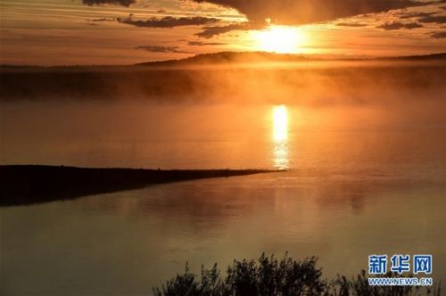这是9月21日拍摄的中俄界江黑龙江呼玛段日出美景。