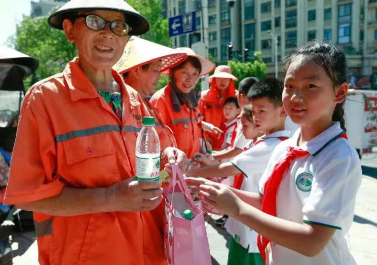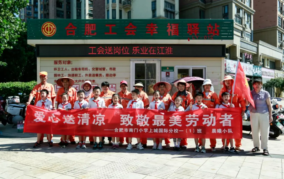 日前,合肥市南门小学上城国际分校一(1)班晨曦小队的同学们来到庐阳区杏林街道幸福驿站,开展了主题为“爱心送清凉 致敬最美劳动者”暑期实践活动,积极体验环卫工人的工作,为环卫工人们送去一份“爱心清凉礼包”。