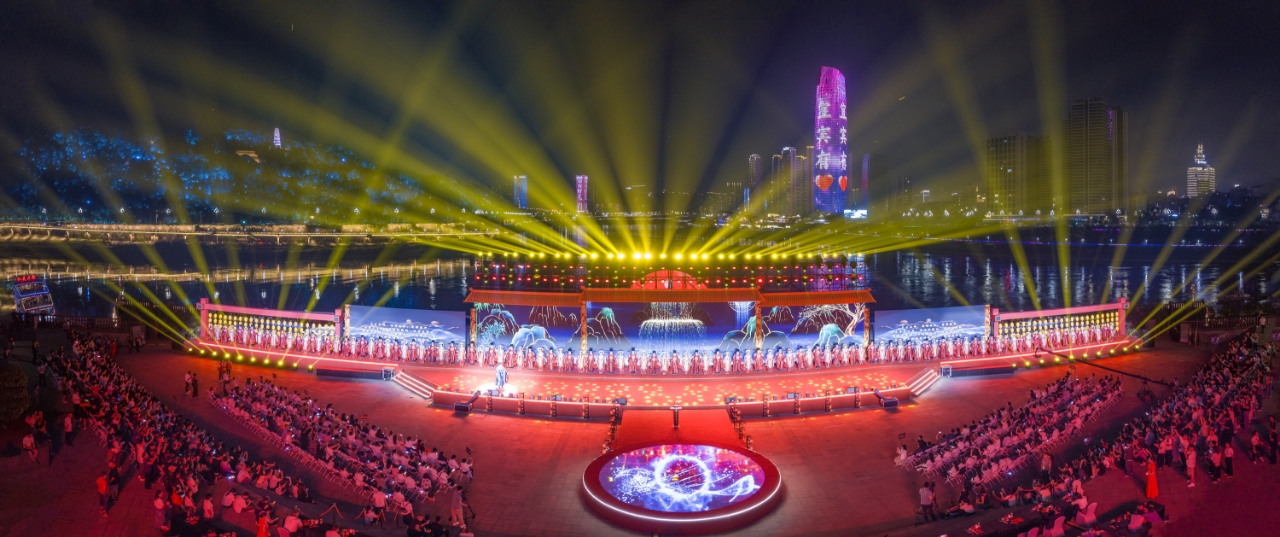 喜宴后,52辆凯翼婚车披挂鲜花彩带,在10辆“五粮仙子”主题彩车的引领下,从五粮液景区驶向合江门广场。至晚上20时,婚典主仪式在合江门广场拉开帷幕。岷江与金沙江于此汇成长江,恰似良缘天作之合。舞台以三江为背景,巨型LED屏联动千架无人机,上演光影画卷,将自然奇观与人文意象融为一体。婚典现场还发布了“宜宾浪漫之旅”旅游线路。