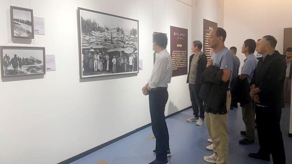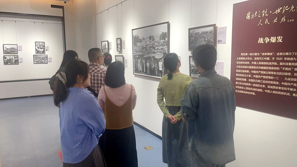 国庆中秋假期,在安徽省六安市新闻传媒中心文化产业实践基地展出的新华社“国社之镜·世纪光影之人民必胜”艺术展,吸引了众多市民游客前往参观。展览以“人民必胜”为主题,精选140余张珍贵历史照片,通过“战争爆发”“浴血奋战”“共同抗战”“伟大胜利”“前事不忘”五个部分,铺展出一幅可歌可泣、气壮山河的抗战全景图,全面再现中国作为世界反法西斯战争东方主战场的壮烈史诗,深刻诠释“伟大抗战精神是中国人民弥足珍贵的精神财富”的深邃论断。(夏俊 摄)