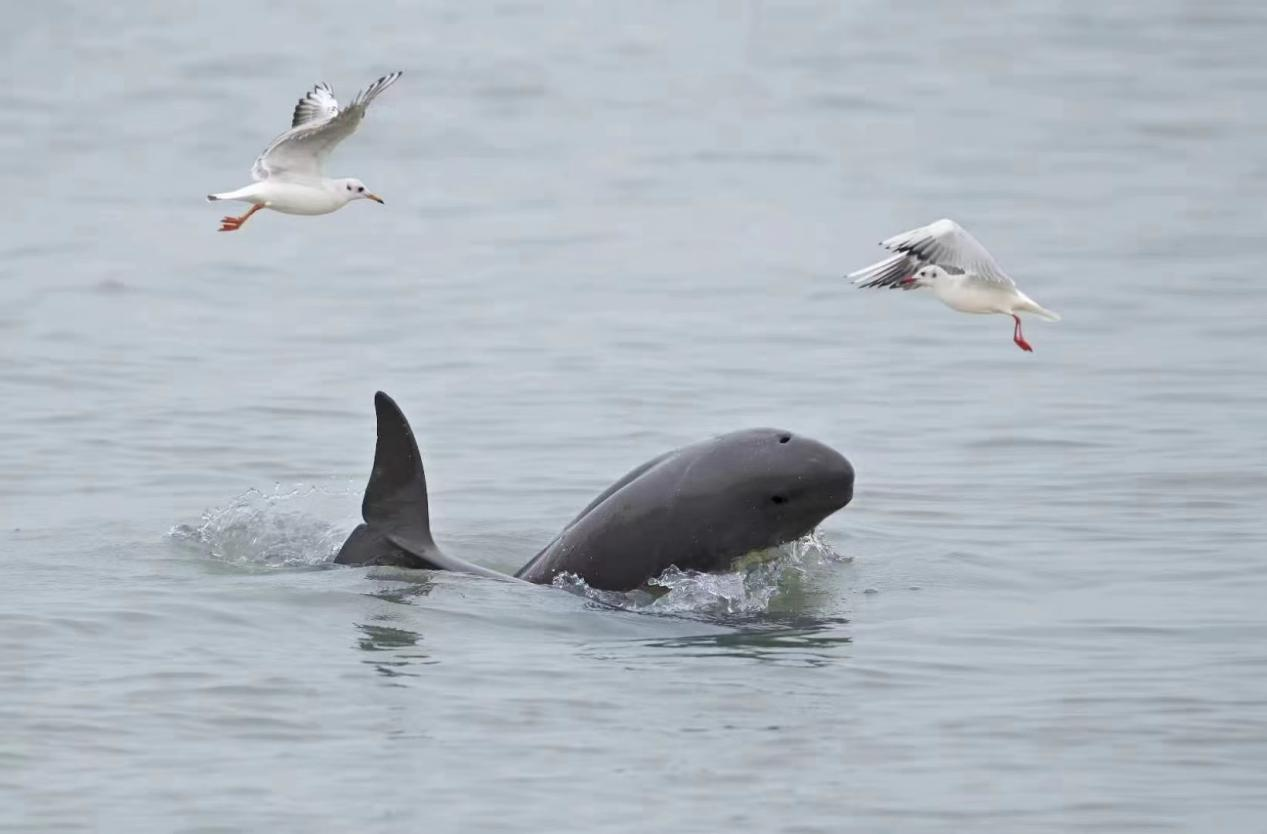 江豚在长江东至段嬉戏。(安徽省农业农村厅供图)