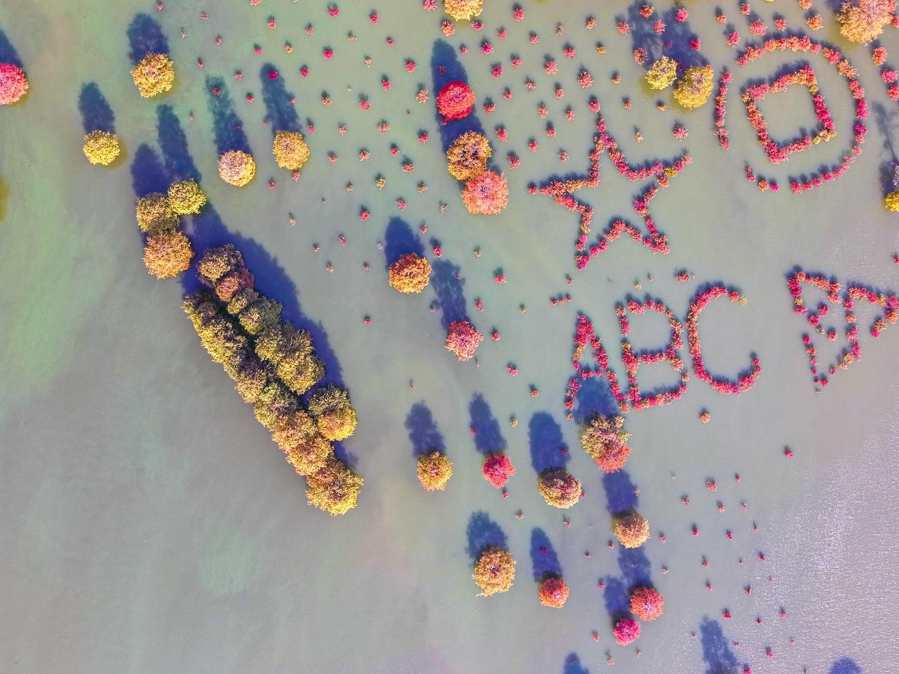 每年深秋初冬,庐江县柯坦镇城池村大汉塘的300余亩水上森林渐渐褪去了绿色的外套,换上红色系的装束,在阳光的照射下美得让人心醉神迷,充满着童话森林的气息,探访“水上池杉林”已成为周边游人的一大乐事。游客们乘坐小舟穿行在层林尽染的万株池杉树丛中,阳光透过疏密有致的枝叶,在静谧的湖面上洒下斑驳的光影,游船穿行于水中森林,仿佛漫步于一幅流动的风景画中。无人机从空中俯拍,色彩不一的池杉“尖儿”也别有趣味,尽显生命的绚烂与美丽。