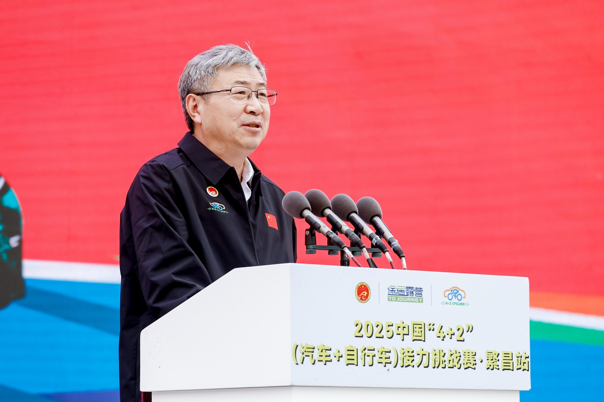 亚洲自行车运动联合会公路委员会主席、中国自行车运动协会副秘书长兼竞赛部部长韩峰进行了“中国4+2接力挑战赛”创新型赛事战略发布。他指出,该赛事已正式纳入中国自行车运动协会官方赛事体系,是协会积极构建中国特色现代化赛事体系、破解发展难题的创新探索。赛事具备官方认证的体系属性,作为中国公路自行车大众竞赛体系中的“高阶赛事”,肩负着构建业余选手职业化晋升规范、打通业余车手职业发展通道的核心使命,将有效打破专业与业余赛事体系间的壁垒,为中国公路自行车运动的普及与发展树立里程碑。