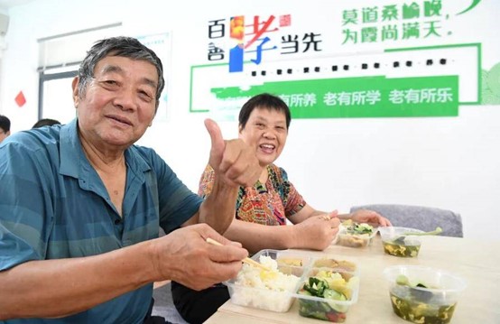 北苑村社区老年助餐点内,社区老年居民在享受平价午餐