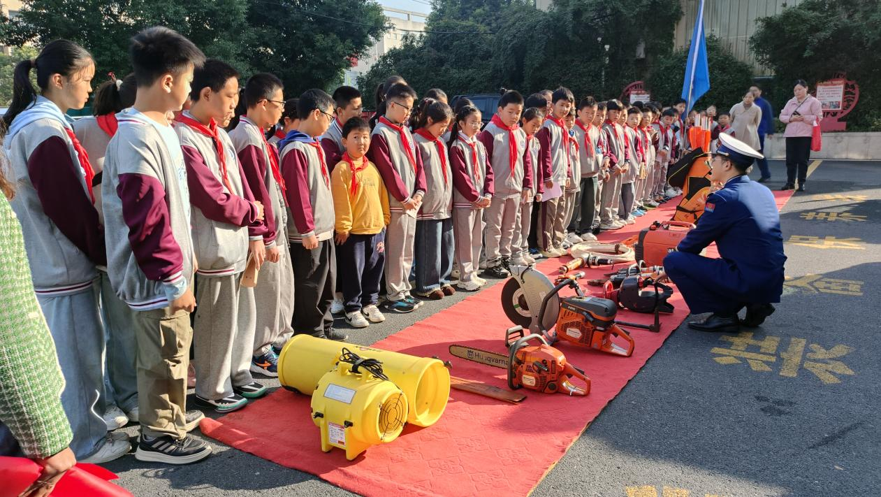 在消防员的专业引导下,同学们近距离观察消防车辆、破拆工具、防护装备等器材,亲身试穿消防服、学习灭火器“提、拔、握、压”操作要领,直观感受消防工作的专业性与艰辛。此次研学不仅让孩子们熟练掌握自救互救技能,更在心中播下三颗珍贵的种子——重视生命的安全种子、勇担责任的责任种子、崇尚奉献的榜样种子,让“火焰蓝”精神成为成长路上的精神滋养。