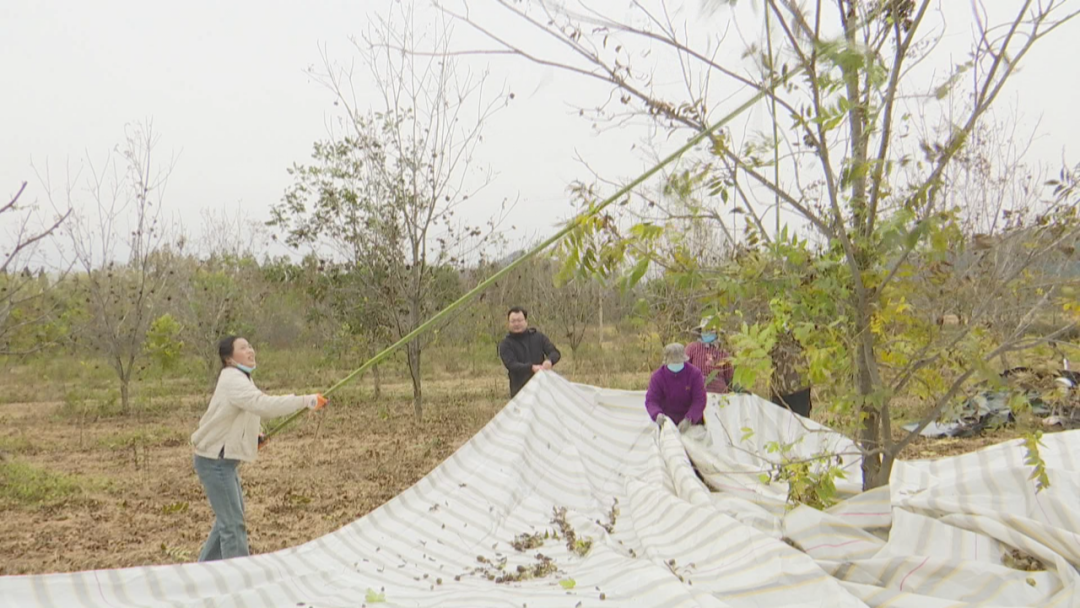 金秋时节,安徽省宿州市埇桥区夹沟镇五柳村珍珠泉家庭农场的碧根果园里,累累硕果挂满枝头,村民们正忙着采摘果实并进行后期管护。