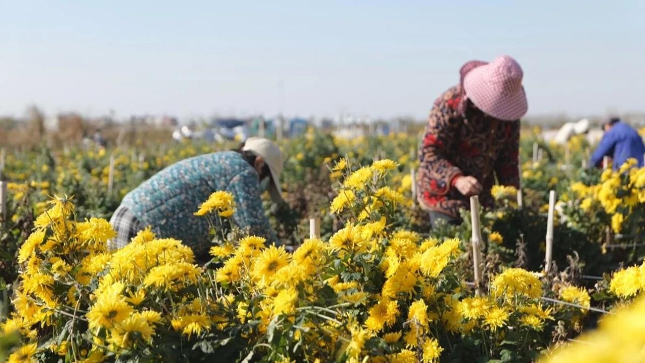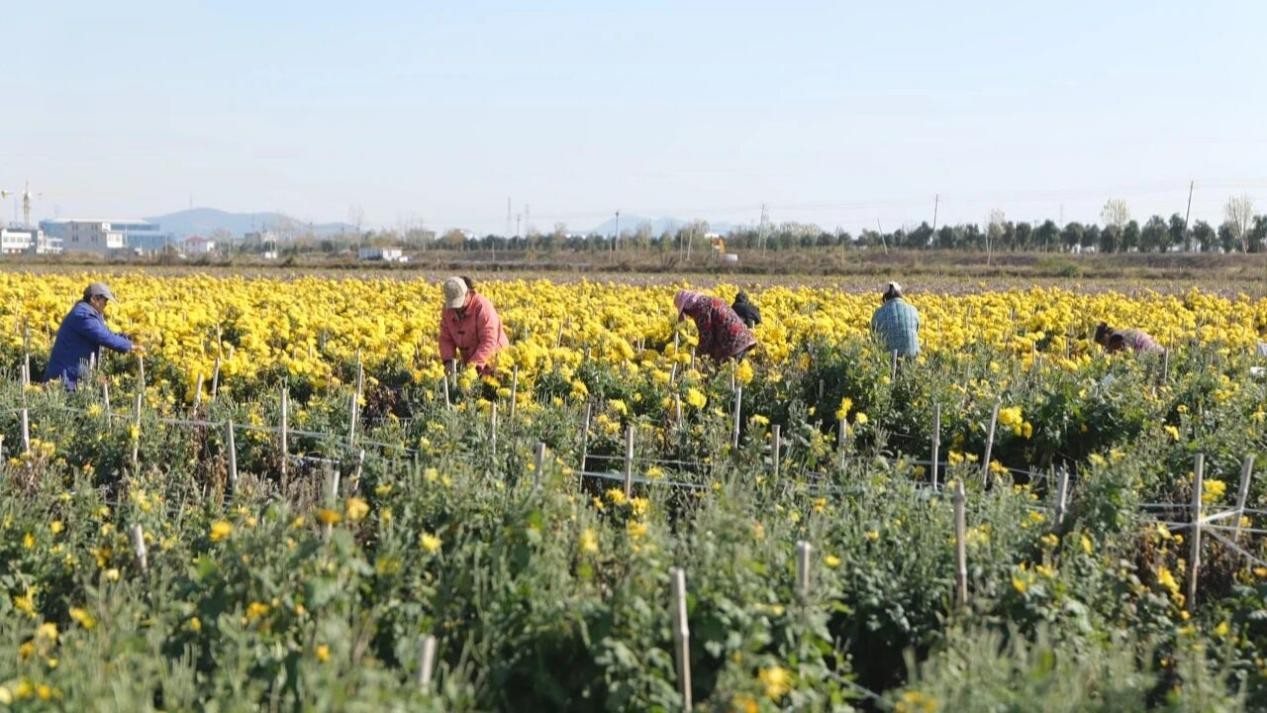 杨圩村村民周士群说道:“以前我们在家没有事,现在来这附近采摘菊花,挣点零花钱,感觉还是不错的。”