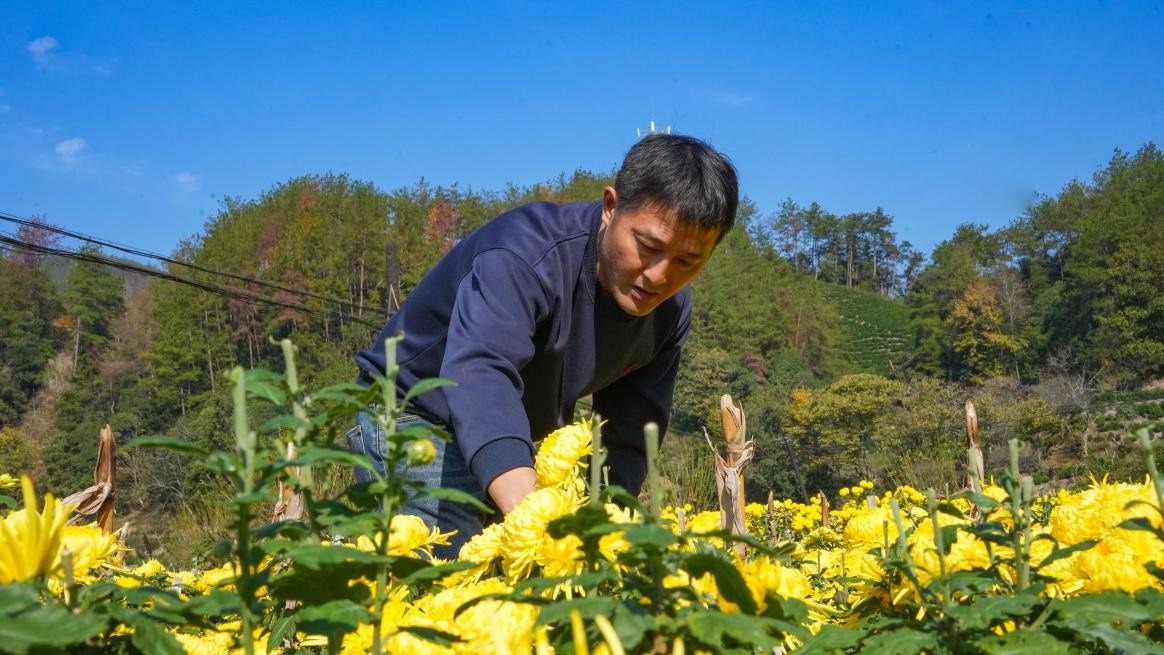 驻村工作队帮助村民采摘菊花