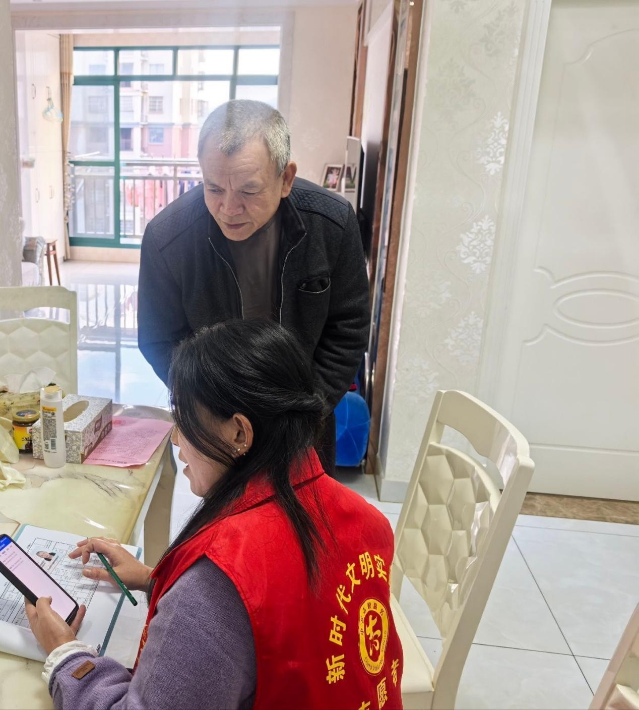 敲门问需,服务“送上门”。各村、社区工作人员和网格员主动下沉网格,以脚步丈量辖区的每一寸土地,以真心敲开每一个老人的家门,以“唠家常”的方式听取老人的意见和诉求。针对老年人的各种问题,能当场解答解决的,现场予以精准答复;不能当场解答解决的,登记入册、整理归纳,协调各方力量尽快解决。在敲门问需中,新光社区坚持“发现一处、报告一处、整改一处”的原则,对老人居所内的水电气、房屋质量等方面存在的安全隐患立即整改,及时消除各类安全风险。同时,对于独居老人、空巢老人进行“重点敲”“细心问”,坚持每周入户,及时了解他们的身体状况和生活困难,时刻关注健康,及时做好惠民政策的兑现,对存在困难的老人给予关心和帮助,用心解决老年人的“急难愁盼”。在上门服务中,西苑社区网格员对独居高龄的老人,手把手协助完成医疗保险线上缴费,全程代办养老保险资格认证,将“窗口服务”搬到老人家中,彻底打通服务老人的“最后一步路”。