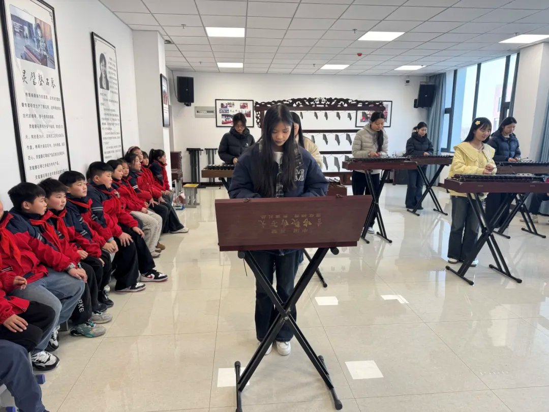 活动中,杨老师为队员们系统介绍了磬石琴的历史渊源与制作石材。在观摩学生代表的示范演奏后,队员们亲身体验了磬石琴的敲击技法,感受其清越悠扬的音色魅力。