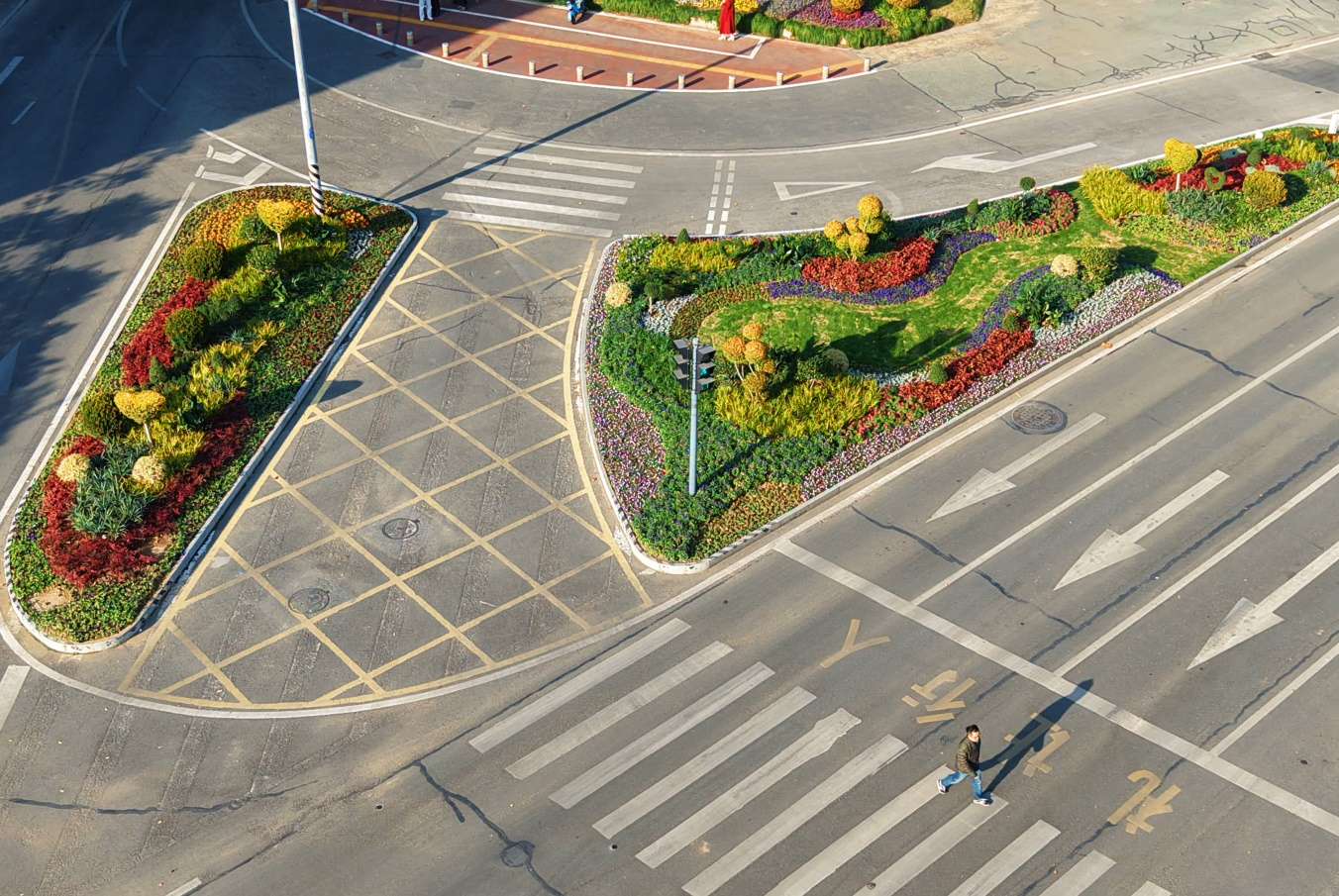 此前,该交通岛存在局部土地裸露、植被品种单一、整体景观效果不佳等问题,不仅影响城市道路的整体美观度,也降低了市民出行的观感体验。为改善这一现状,高新区城管大队联合公服公司聚焦城市景观短板,启动“增花添彩”提升工程,对该交通岛展开全方位、精细化的景观焕新。改造过程中,工作人员结合场地实际条件,他们将桩景、宿根花卉、球根花卉等多种植物有机组合,既注重单株植物的形态展示,又兼顾整体景观的协调统一。通过高低错落的层次设计、疏密有致的空间排布以及和谐相融的色彩搭配,打造出兼具生态美感与观赏价值的花境景观,让交通岛实现了从“单调”到“多彩”的华丽蜕变。