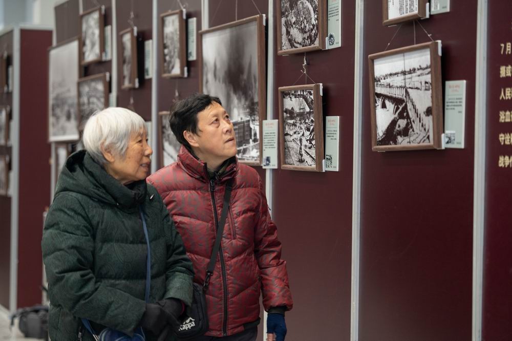 步入展厅,历史记忆扑面而来。展出的照片中,记录了东北爱国将领马占山率部队在冰天雪地中向死而生的决绝冲锋,记录了平型关战役中八路军与敌人展开肉搏的英勇瞬间,记录了滇缅公路上万千民众以双手凿出抗战“生命线”的坚韧身影,记录了侵略者在南京签下投降书、全民族迎来抗战胜利的荣光时刻,更记录了新时代人民军队在阅兵中走过天安门广场的铿锵步伐。从烽火连天的抗战岁月,到意气风发的新时代,一个个定格的时代瞬间、一幕幕鲜活的历史场景,吸引无数观展者驻足。在这里,所有历史的回响,都已化为民族血脉中永恒的红色基因,汇聚成“人民必胜”的最强音。