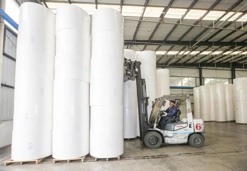 深冬时节,来到宿马现代产业园山鹰纸业(宿州)有限公司,硕大的机器宛如不知疲倦的“钢铁巨兽”,吞吐着一个个直径数米、重达两吨的“大卷筒”——瓦楞纸成品。