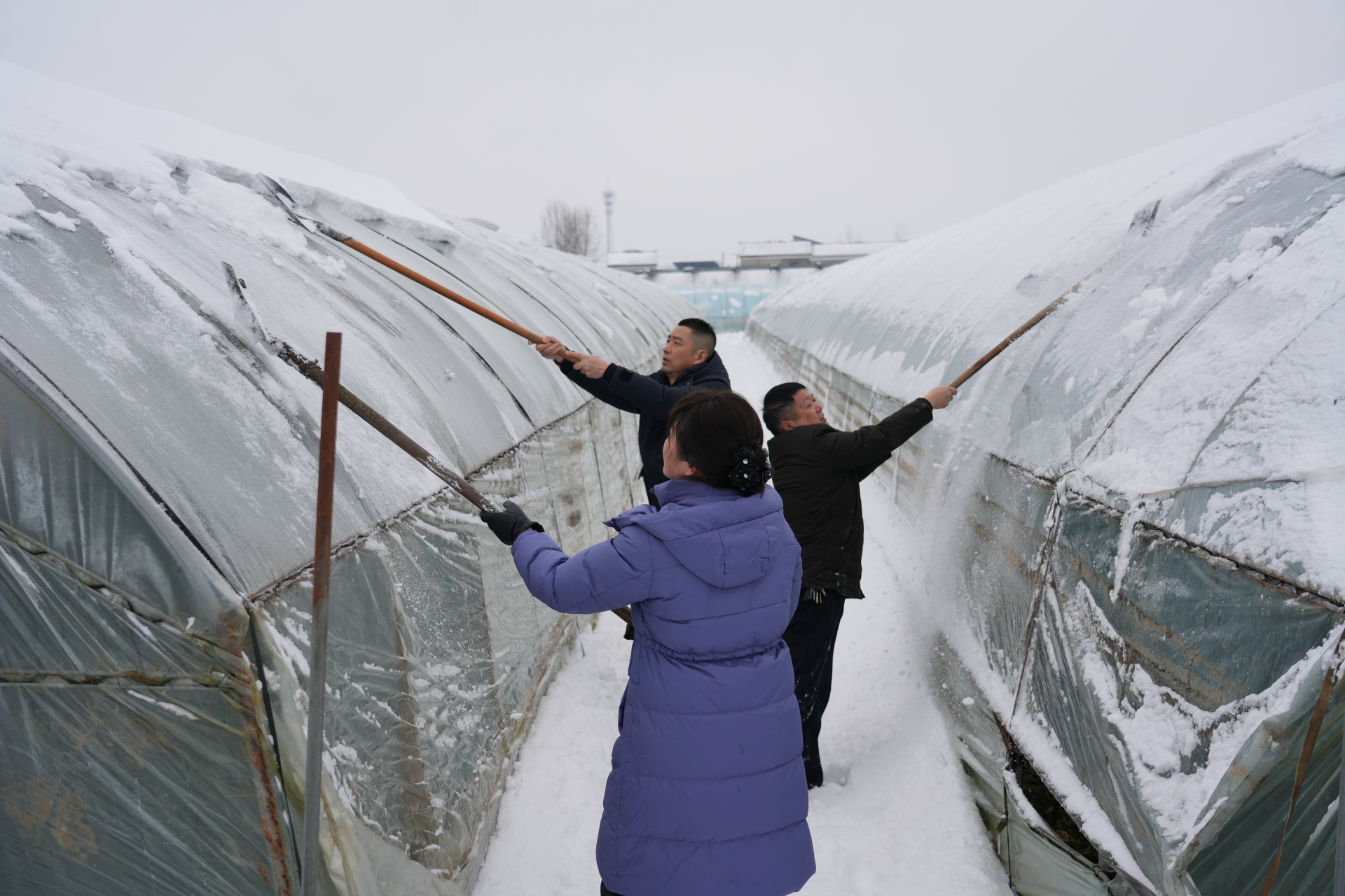 裕安区农业农村局工作人员指导工人除雪 (赵宇 摄)