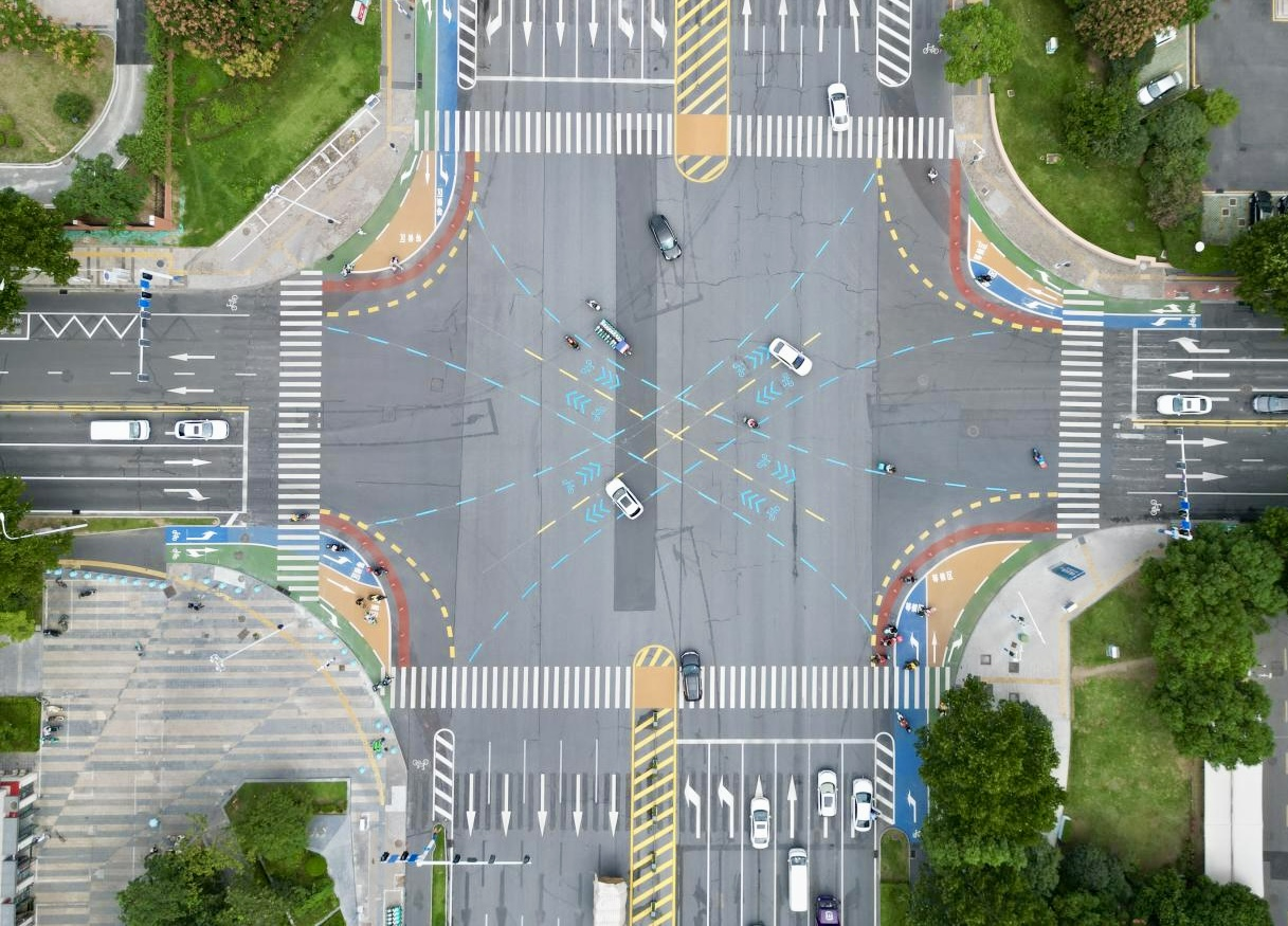 针对交叉口路权模糊、冲突频发等问题,高新区优化“交叉口路权空间重塑”方案,施划了彩色分流线,通过缩小交叉口右转半径及过街距离、增设非机动车待行区与行人驻足区,厘清一次过街空间权与时间权,清晰界定了不同交通参与者的路权,提升了通行秩序与安全。