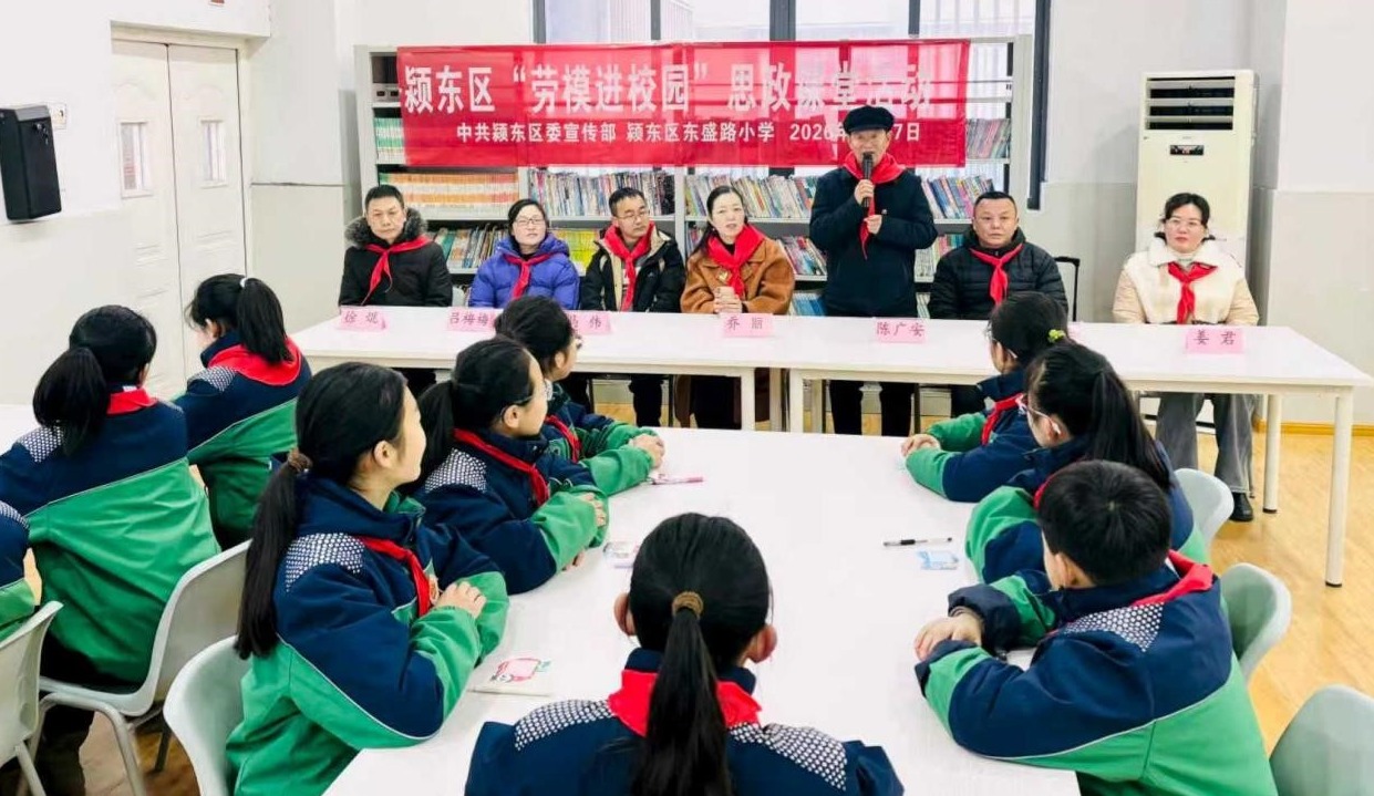为深入学习身边榜样事迹,加强青少年思想道德建设与全民国防教育,1月27日,安徽阜阳市颍东区委宣传部在东盛路小学教育集团成功举办了一场别开生面的“学习身边榜样,争做颍东好少年”沉浸式思政教育文明实践活动。活动特邀“中国好人”陈广安与“阜阳好人”吕梅梅两位榜样人物走进校园,与少先队员代表围坐一堂,分享感人故事,传递奉献精神。