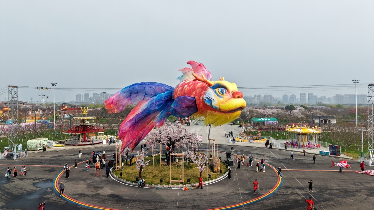 开园当日,景区内游人如织、氛围热烈。巨型鳌鱼灯巡游气势恢宏,十里红妆汉婚大典、县衙沉浸式情景演艺、凤求凰主题演艺秀轮番上演;赛博机甲天团全园巡游互动,古今碰撞、新意十足。夜幕降临,霸王虞姬高空威亚秀、楚汉争雄非遗铁花秀、天女散樱花高空威亚秀在樱花环岛惊艳亮相,璀璨光影与漫天樱雪交相辉映,现场掌声、欢呼声不断。