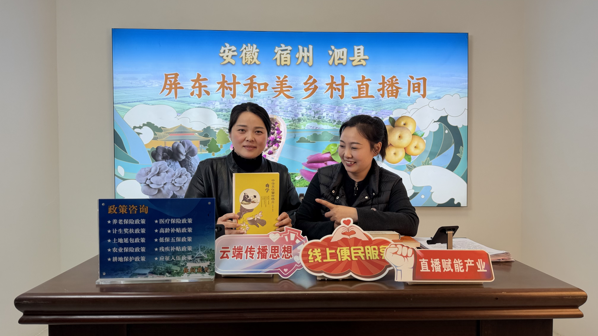 屏山镇屏东村村干部李亭亭、邓素梅,既是直播间的主播,也是农家书屋的管理员。