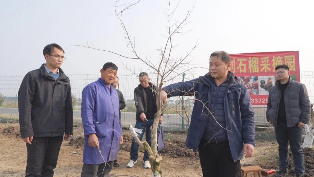 春季是石榴管理的关键期,科技园邀请安徽省农业科学院园艺研究所博士、副研究员黎积誉深入茨淮新河百里石榴基地,开展春季石榴田间管理指导。黎积誉仔细查看石榴树的越冬情况,详细讲解了石榴嫁接、施肥、清园等方面的注意事项。果农们围拢过来,与黎积誉进行了现场交流。