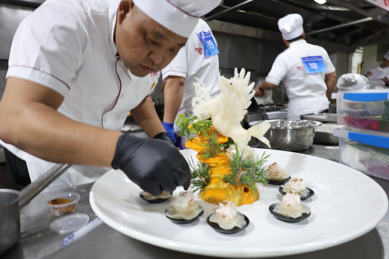 “本次大赛中,各位选手精神饱满、各展所长,从精细的刀工处理、精准的火候把控,到巧妙的调味创意、精致的摆盘呈现,都展现出扎实深厚的专业功底和精益求精的工匠精神。”大赛评委、安徽省烹饪协会副会长邵军对此次大赛给予了高度赞誉,他表示,一道道匠心菜品不仅是烹饪技艺的精彩展示,更是对宿州美食文化的传承与创新。整个赛事组织有序、氛围热烈,真正达到了以赛促学、以赛促练、交流共进的良好效果,充分彰显了宿州餐饮行业的高水平,也为徽菜文化传承与地方餐饮发展注入了强劲动力。(曹杰)
