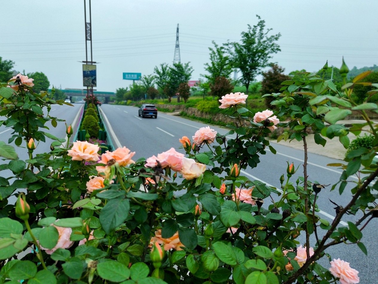 合肥庐江:346国道月季盛放 扮靓春日生态景观廊道