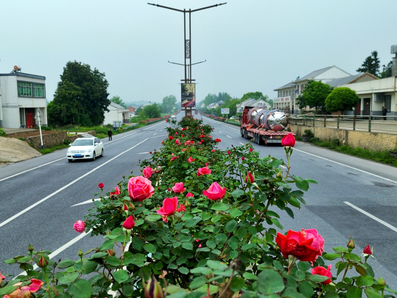 346国道是连接庐江与合肥、舒城的重要交通要道,车流量较大。近年来,万山镇全力打造“绿美公路”,对国道沿线进行全方位绿化美化,特意挑选了花期长、花色艳、适应力强的月季,作为中央隔离带的主打花卉。经过科学栽种和精细化养护,不仅让公路环境焕然一新,实现了道路通行“畅、安、舒、美”,更靠着月季月月开花的特点,打造出了四季有花、一路芬芳的生态景观廊道。