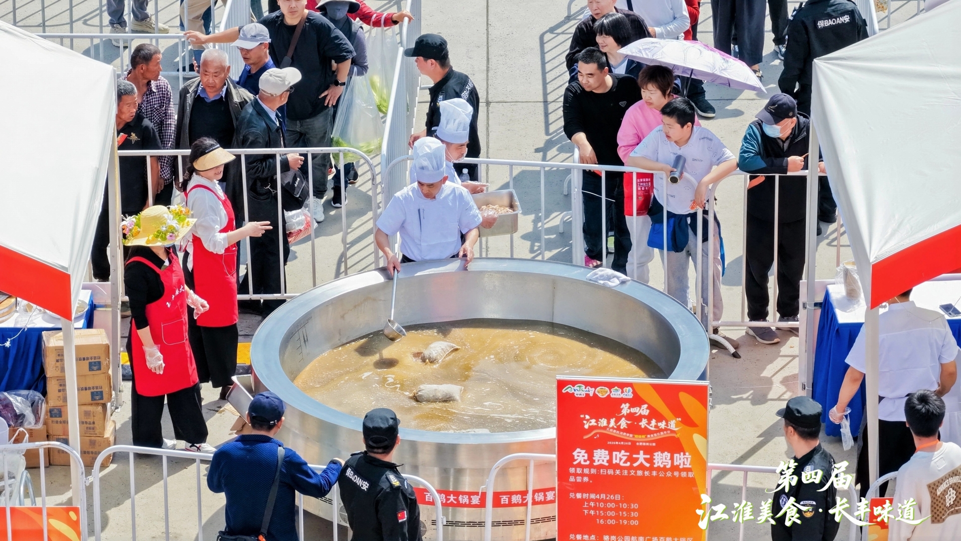 活动现场,直径数米的“百鹅大锅”热气腾腾,100只地道吴山贡鹅经古法卤制香气四溢,群众凭免费品尝券即可品鉴这一江淮非遗美食;长丰百家宴专区里,春晚同款美食复刻、特色全鹅宴等百余道风味佳肴集中亮相,一菜一故事、一味一风情,将长丰的饮食文化、乡土记忆娓娓道来。同步开市的非遗集市、特色农产品集市上,一件件匠心独运的非遗手作、一批批带着泥土芬芳的长丰乡村好物,让游客在舌尖寻味之外,更能沉浸式感受长丰的文化底蕴与田园风情。