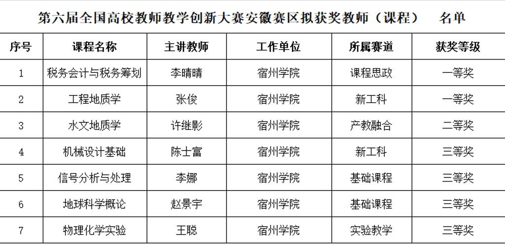全国高校教师教学创新大赛经教育部批准,由教育部高等教育司指导、中国高等教育学会主办,是高校教师认可度最高、难度最大的比赛之一。自2025年9月大赛启动以来,宿州学院高度重视,精心组织、做好选拔推荐工作,全力支持教师备赛,多次邀请专家开展专题培训与辅导,对参赛作品反复打磨。参赛教师(团队)潜心钻研、精益求精,凭借扎实的教学功底与创新的教学理念,在省级选拔中脱颖而出,取得优异成绩。(沈荣生)
